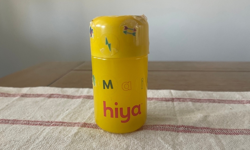 I don’t recall exactly how long my order took to ship, but I don’t remember there being any issues either. We received our first Hiya package and were impressed with the quality of the bottle and the packaging. Staying true to their theme, the packaging is bright, fun, and kid-friendly.